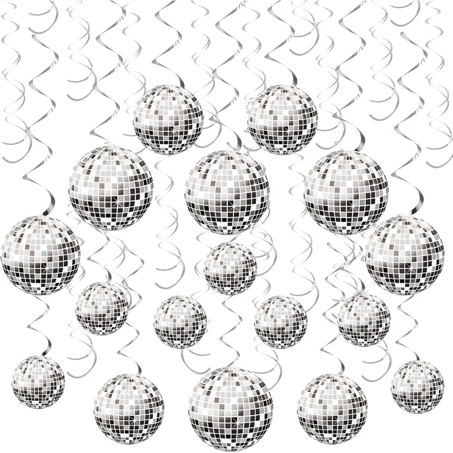 60Pieces 70s Retro Disco Party Decorations with Hanging Swirls and Disco Ball Streamers for Themed Birthday Parties Hippie Styl