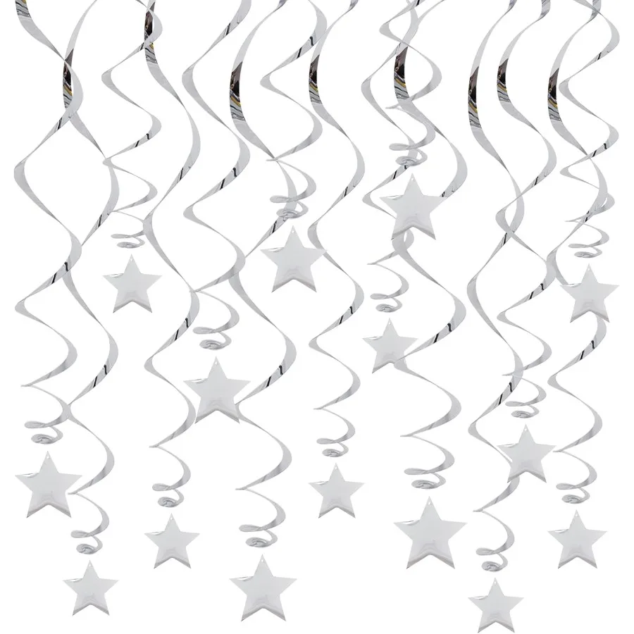 BEISHIDA Silver Star Hanging Swirl Decorations for Graduation Wedding Baby Shower Events Elegant Metallic Party Supplies with 1