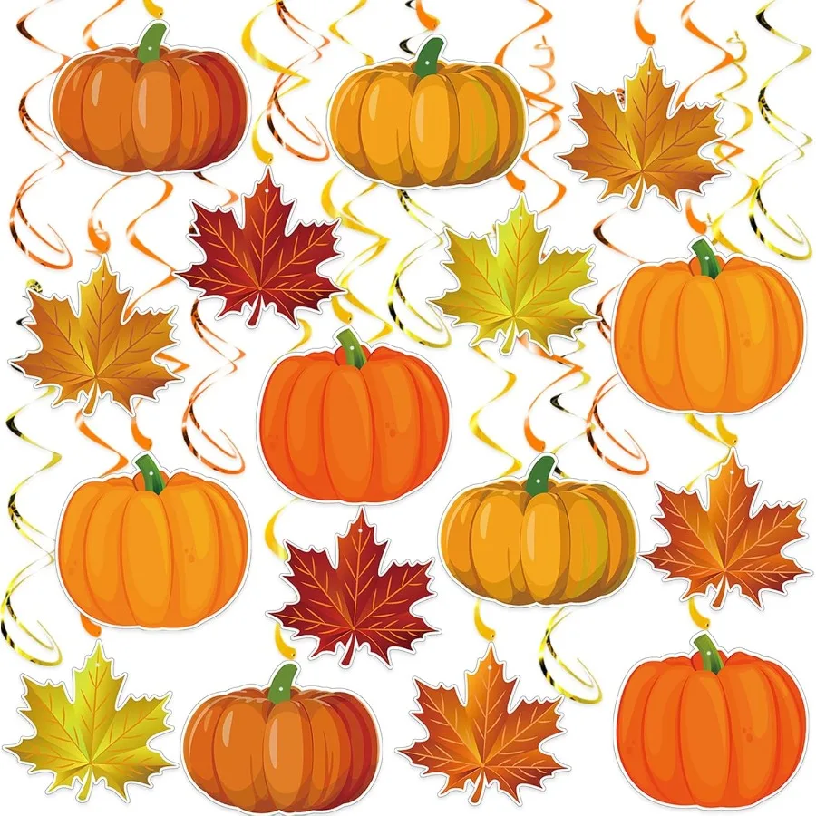 Fall Decor Pumpkin Maple Leaf Hanging Swirl – Autumn Thanksgiving Harvest Decor for Home Classroom Office Ceiling Decorations I