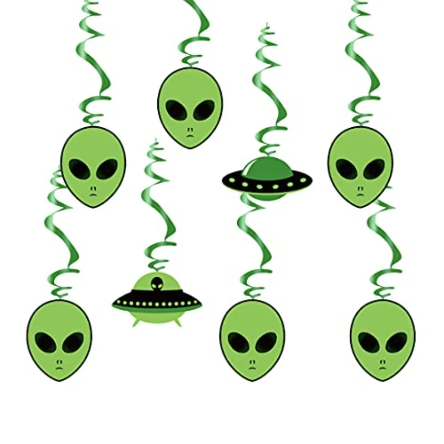 Green Alien Theme Hanging Swirl Decorations with Cutouts for UFO-Themed Birthday Party Baby Shower First Birthday Celebration S